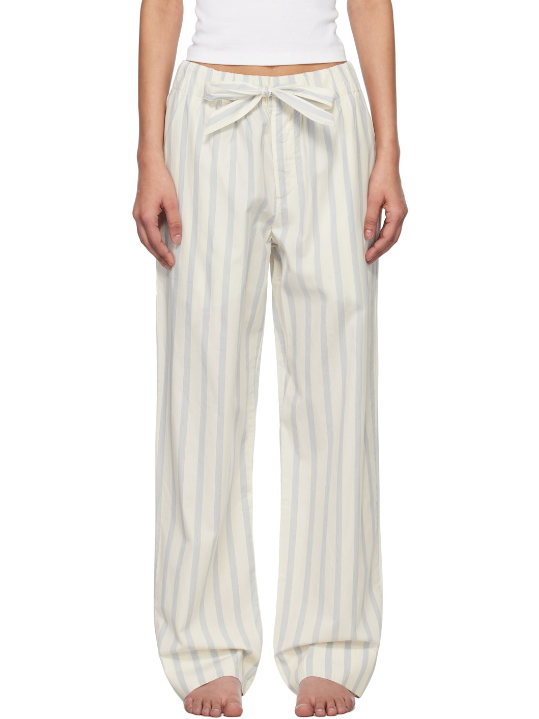 Stonewashed and lightweight organic cotton poplin pyjama pants. Stripes throughout. - Straight-leg and oversized - Oeko-Tex® Standard 100-certified - Drawstring at elasticized waistband - Three-pocket styling - Button fly - Logo patch at back pocket Supplier color: Needle stripes