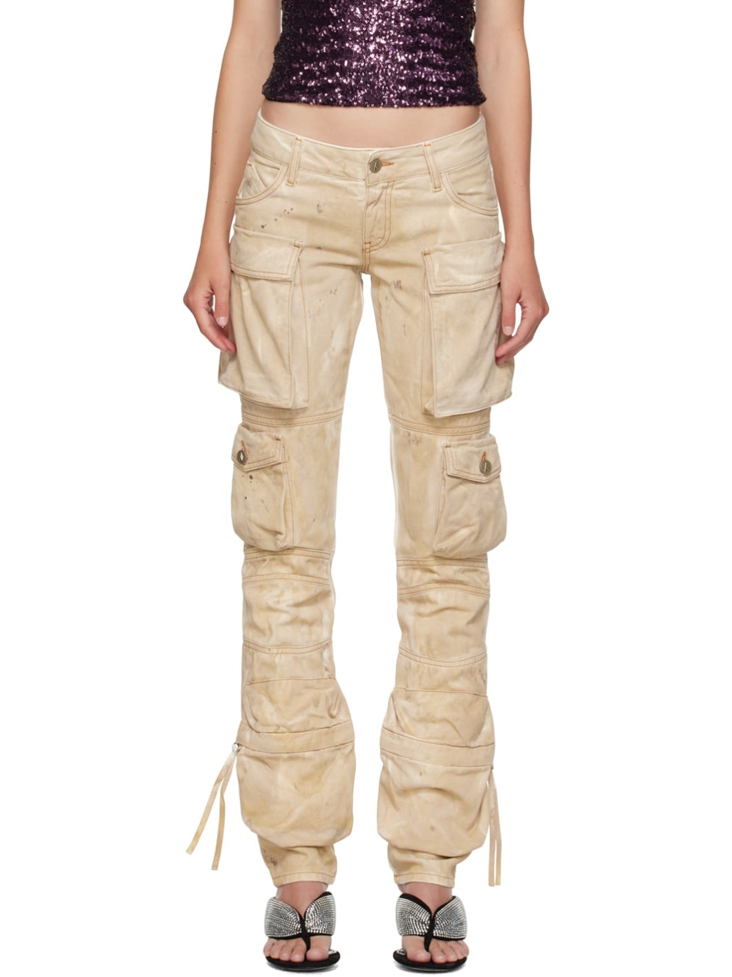 Skinny-fit cotton twill trousers. Smudging and fading throughout. · Paneled construction · Low-rise · Belt loops · Five-pocket styling · Zip-fly · Zip pocket at cuffs · Cargo pockets at outseams · Logo embroidered at back pocket · Logo-engraved antiqued gold-tone hardware · Contrast stitching in tan Supplier color: Natural marble 100% cotton. Made in Italy 232528F087012