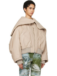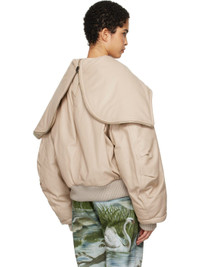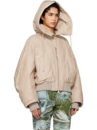 Biege Padded Leather Bomber Jacket