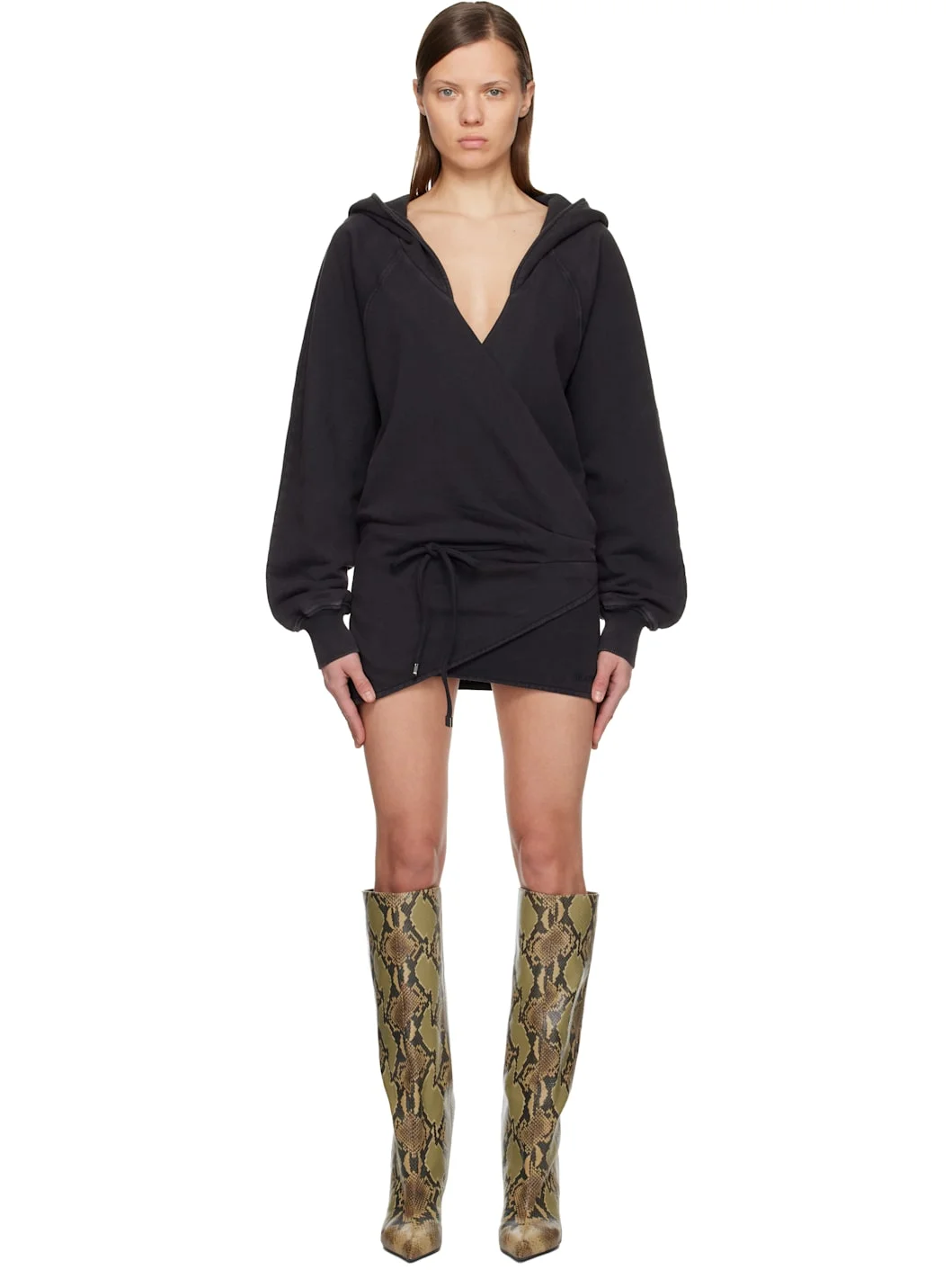 French terry minidress. · Fading throughout · Wrap construction · Hood at plunging Y-neck · Drawstring at waist · Logo embroidered at front hem · Raglan sleeves · Rib-knit cuffs Supplier color: Faded black Body: 100% cotton. Trim: 98% cotton, 2% elastane. Made in Portugal 261528F052005