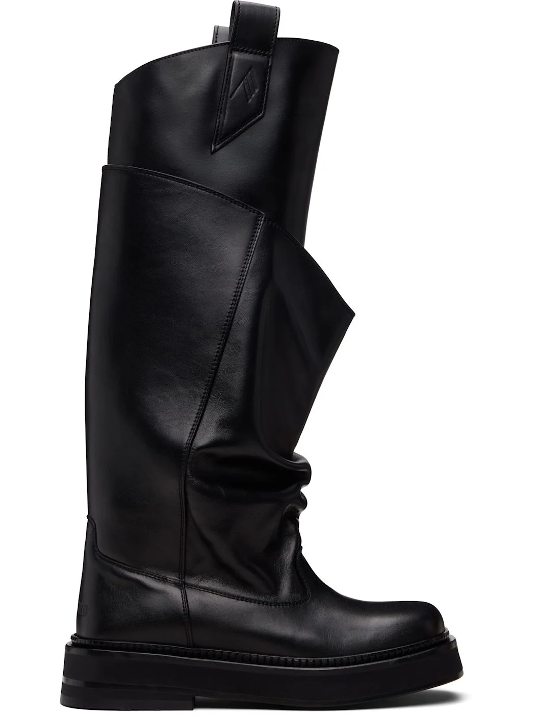 Mid-calf grained calfskin boots. · Layered construction · Square toe · Logo-embossed pull-loops at collar · Buffed calfskin lining · Logo embossed at heel · Serrated edge at welt · Stacked foam rubber midsole and heel · Leather sole Supplier color: Black Upper: calfskin. Sole: leather. Made in Italy 261528F114000