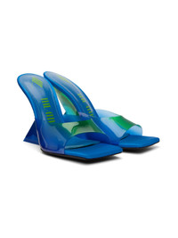 Transparent PVC and plexiglass slip-on heeled sandals in blue. Gradient effect throughout. · Open square toe · Logo-printed padded leather and satin footbed · Sculptural wedge heel with rubber injection · Leather sole · Heel: H4 in Supplier color: Degrade blue Upper: synthetic. Sole: leather. Made in Italy 232528F125002