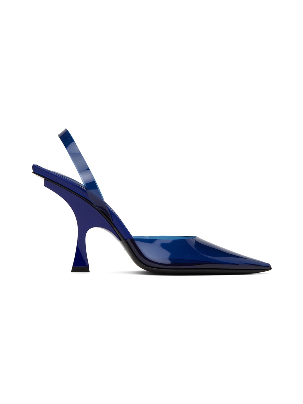 Transparent PVC heels in blue. · Pointed toe · Fixed slingback strap · Logo printed at padded footbed · Polymer stiletto heel with rubber injection · Leather sole · Heel: H3.5" Supplier color: Electric blue Upper: polyvinyl chloride. Sole: rubber, leather. Made in Italy 241528F122001