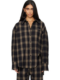 Brushed cotton flannel shirt. · Check pattern throughout · Spread collar · Button closure · Logo embroidered at chest · Asymmetrical shirttail hem · Buttoned barrel cuffs · Box pleat at back yoke Supplier color: Brown shades 100% cotton. Made in Italy 261528F109002