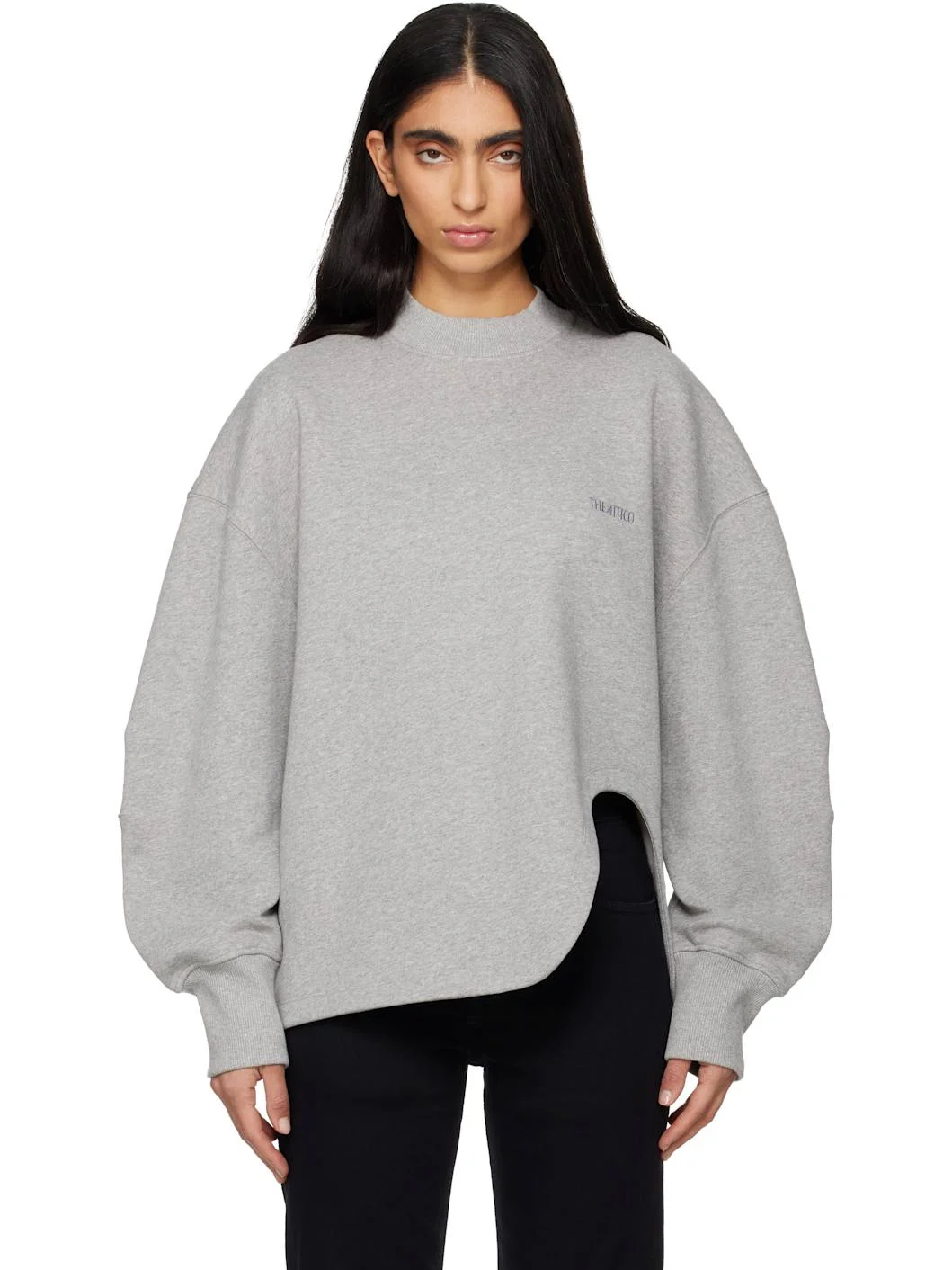 French terry sweatshirt. · Rib-knit crewneck and cuffs · Logo embroidered at chest · Asymmetrical hem · Dropped shoulders · Darts at balloon sleeves Supplier color: Melange grey Body: 100% cotton. Trim: 98% cotton, 2% elastane. Made in Portugal 261528F098001