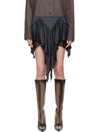 Viscose jersey miniskirt. · Gathering and ruffled trim throughout · Elasticized waistband · Asymmetric hem · Embroidered logo patch at back waistband · Full georgette lining Supplier color: Dark grey Body: 100% viscose. Lining: 100% polyester. Made in Italy 252528F090001