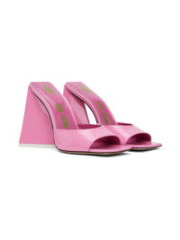 Patent leather slip-on heeled sandals in pink. · Open square toe · Logo printed at padded leather footbed · Grained leather lining · Covered triangular block heel with rubber injection · Leather sole · Heel: H4 in Supplier color: Light pink Leather. Made in Italy 232528F125020