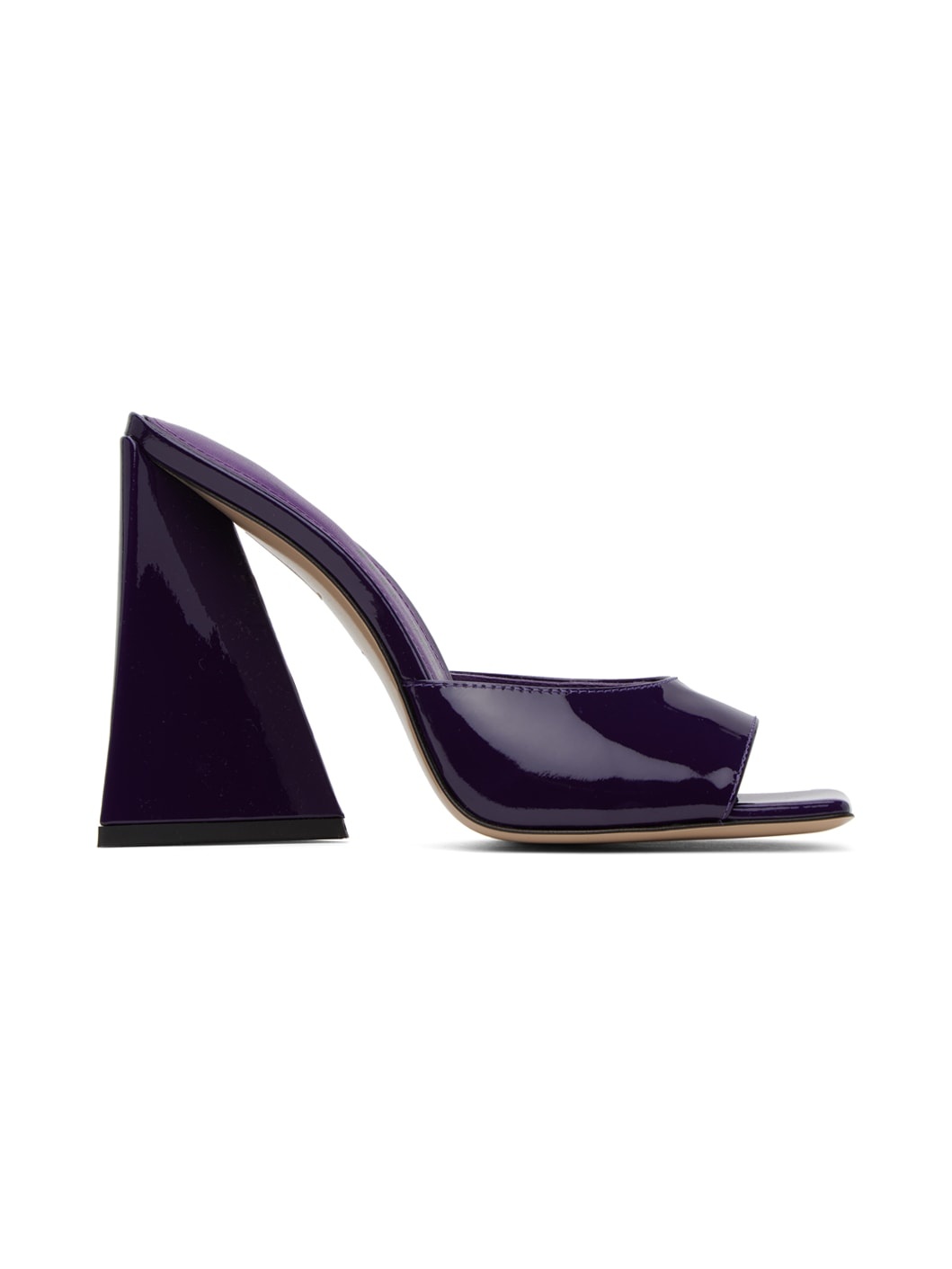 Patent nappa calfskin slip-on heels in purple. · Square toe · Logo printed at padded goatskin footbed · Grained goatskin lining · Covered sculptural block heel with rubber injection · Leather sole · Heel: H4" Supplier color: Electric purple Upper: calfskin. Sole: leather, rubber. Made in Italy 241528F125000