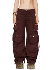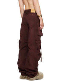 Cotton canvas cargo pants. Fading throughout. · Belt loops · Five-pocket styling · Zip-fly · Cargo pockets at front and outseams · Adjustable button tab at cuffs · Darts at inseams · Logo patch at back waistband · Logo embroidered at back pocket · Logo-engraved antiqued silver-tone hardware Supplier color: Red/Burgundy