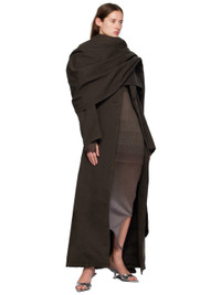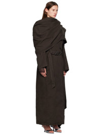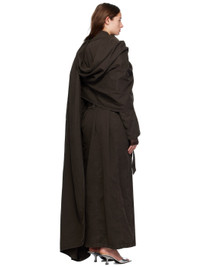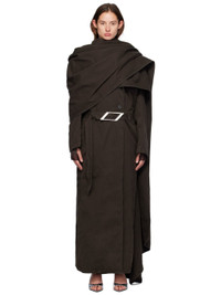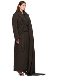Cotton canvas trench coat. · Notched lapel · Offset single-button closure · Integrated wraparound shawl-style panel at front · Belt loops and detachable pin-buckle belt · Seam pockets · Full cotton poplin lining Available exclusively at SSENSE. Supplier color: Brown Body: 100% cotton. Lining 1: 100% cotton. Lining 2: 100% polyester. Made in Italy 242528F067001