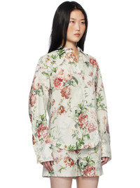 Cotton poplin shirt. Floral pattern printed throughout. · Spread collar · Button closure · Logo embroidered at chest · Asymmetric shirttail hem · Dropped shoulders · Pleated single-button barrel cuffs Supplier color: Ivory 100% cotton. Made in Italy 251528F109000