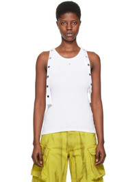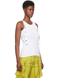 Rib knit cotton tank top. Extended webbing straps with press-stud hardware at shoulders. · Scoop neck · Logo applique at chest · Logo-engraved silver-tone hardware Supplier color: White Body: 100% cotton. Trim: 100% polyester. Made in Italy 241528F111000