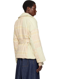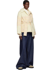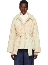 Padded brushed organic cotton flannel jacket. Check pattern throughout. · Paneled construction · Spread collar · Concealed button closure · Belt loops and detachable self-tie belt · Seam pockets · Full poplin lining Supplier color: Sand 100% cotton. Made in United States 251014F063008