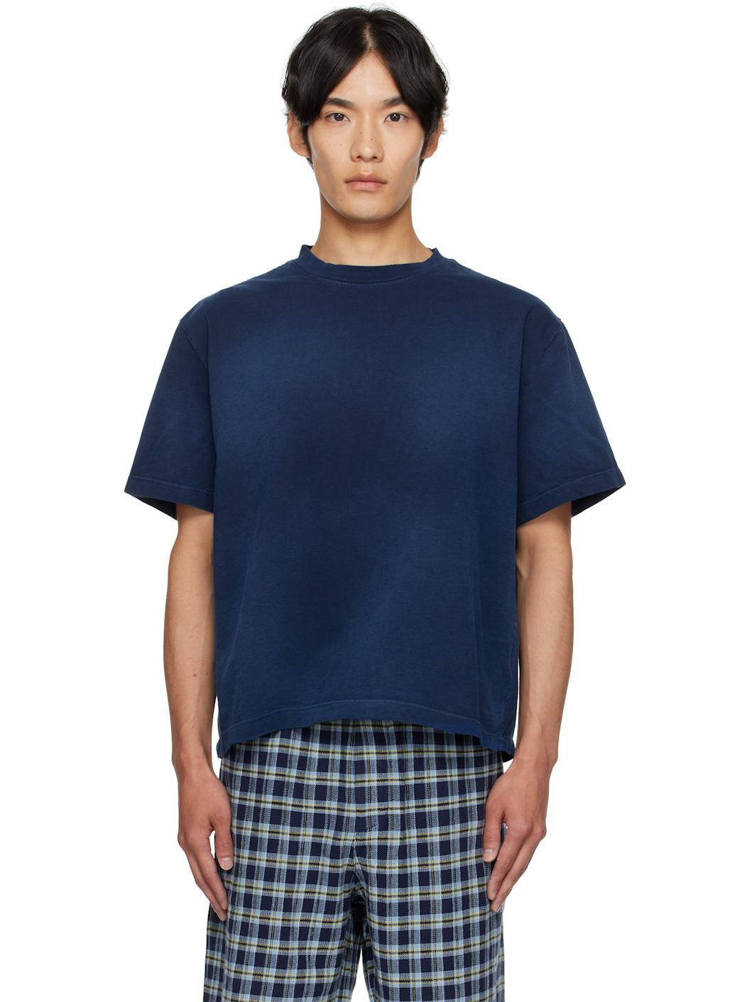 Handcrafted cotton- and cashmere-blend jersey T-shirt. · Fading throughout · Rib-knit crewneck · Dropped shoulders Supplier color: New blue 96% cotton, 4% cashmere. Made in United States 252014M213008