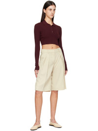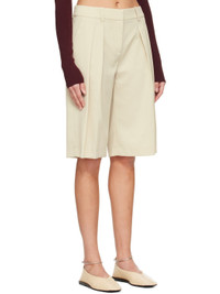 Cotton twill shorts. · High-rise · Belt loops · Three-pocket styling · Zip fly · Pleats at front · Creased legs Supplier color: Cement Body: 100% cotton. Trim: 100% polyester. Made in Serbia 252115F088012