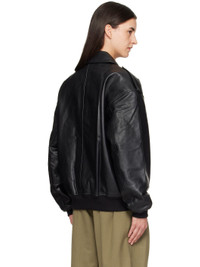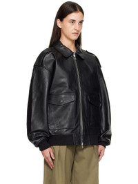 Heavyweight grained leather jacket. · Oversized · Spread collar · Two-way zip closure · Flap pockets and concealed welt pockets at waist · Fixed epaulets · Dropped shoulders · Rib-knit hem and cuffs · Full satin lining Supplier color: Black Body: 100% leather. Lining: 100% polyester. Made in India 252115F064003
