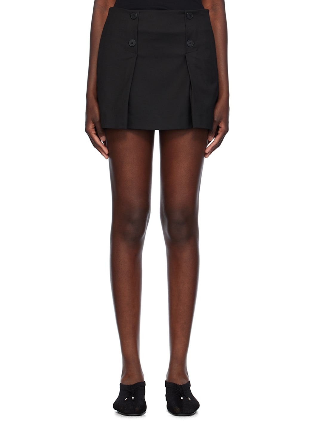Stretch recycled polyester- and viscose-blend broken twill skirt. · Pleats and button detailing at front · Three-pocket styling · Concealed zip closure at side seam Supplier color: Black 63% recycled polyester, 34% viscose, 3% elastane. Made in Romania 242364F090001