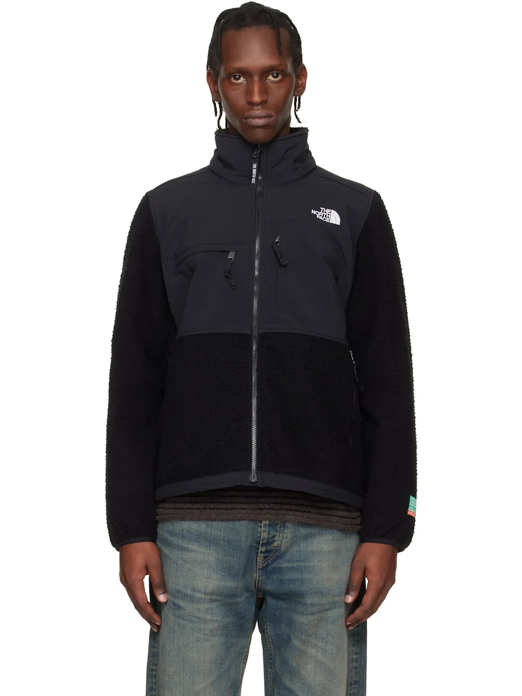 Wool fleece and WindWall™ recycled nylon taffeta jacket. · Paneled construction · Stand collar · Zip closure · Logo embroidered at chest and back · Zip pockets at front · Bungee-style drawstring at hem · Zip vent at underarms · Text patch at sleeve · Press-stud tab at elasticized cuffs Supplier color: Tnf Black Body 1: 100% wool. Body 2: 100% polyamide. Trim: 100% polyamide. Made in Viet Nam 261802M180033