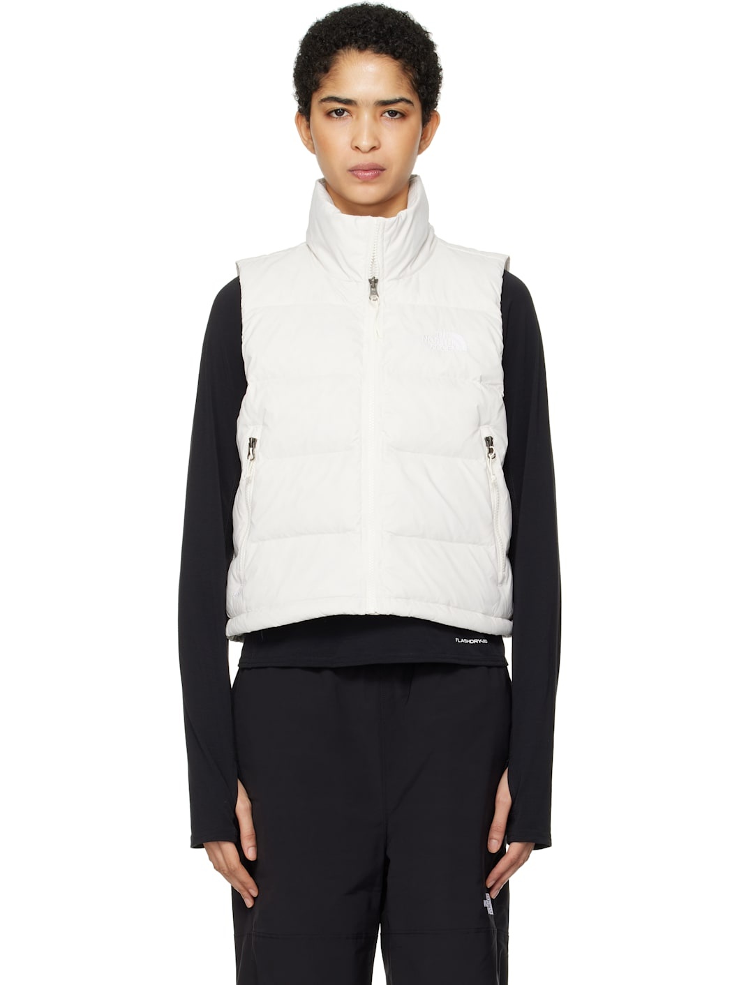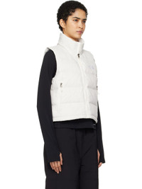 Quilted and recycled down-filled nylon taffeta vest. · Water-repellent · Stand collar · Zip closure · Embroidered logo at chest and back · Zip pockets · Embroidered text at front hem · Concealed bungee-style drawstring at hem Supplier color: White dune Fill: 75% recycled down, 25% recycled waterfowl feathers.
