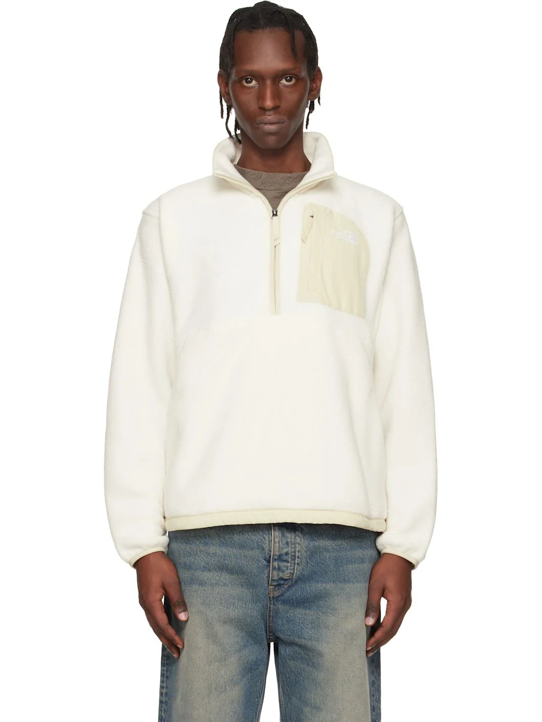 Recycled fleece jacket. · Taffeta trim throughout · Stand collar · Half-zip closure · Logo embroidered at chest and back · Zip pockets at front · Bungee-style drawstring at hem · Elasticized cuffs Supplier color: White dune/Desert 100% polyester. Made in Jordan 261802M202005