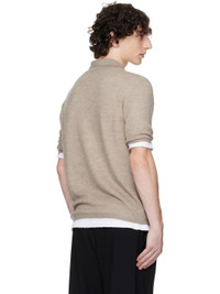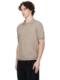 Semi-sheer knit cashmere polo. Jacquard pattern throughout. · Lightweight · Spread collar · Open placket · Rib-knit hem and cuffs Supplier color: Beige melange 100% cashmere. Made in Italy 252359M212004
