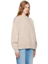 Heavyweight knit wool- and cashmere-blend sweater. · Rib-knit crewneck, hem, and cuffs · Dropped shoulders · Central garter stitch stripe at back Supplier color: Sand 65% wool, 35% cashmere. Made in Italy 242359F096017