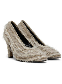 Twisted gauze and braided shag-knit cashmere-blend heels in tones of beige. · Pointed toe · Buffed leather lining · Stiletto heel with rubber injection · Leather sole · Heel: H3.5" Supplier color: Lama Upper: textile. Sole: leather, rubber. Made in Italy 251359F122001