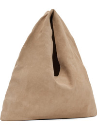 Calfskin suede tote in beige. · Integrated carry handle · Logo embossed at face · Open throat · H7" x W12" · Total height: H12" Supplier color: Beige melange Calfskin. Made in Italy 252359F049022