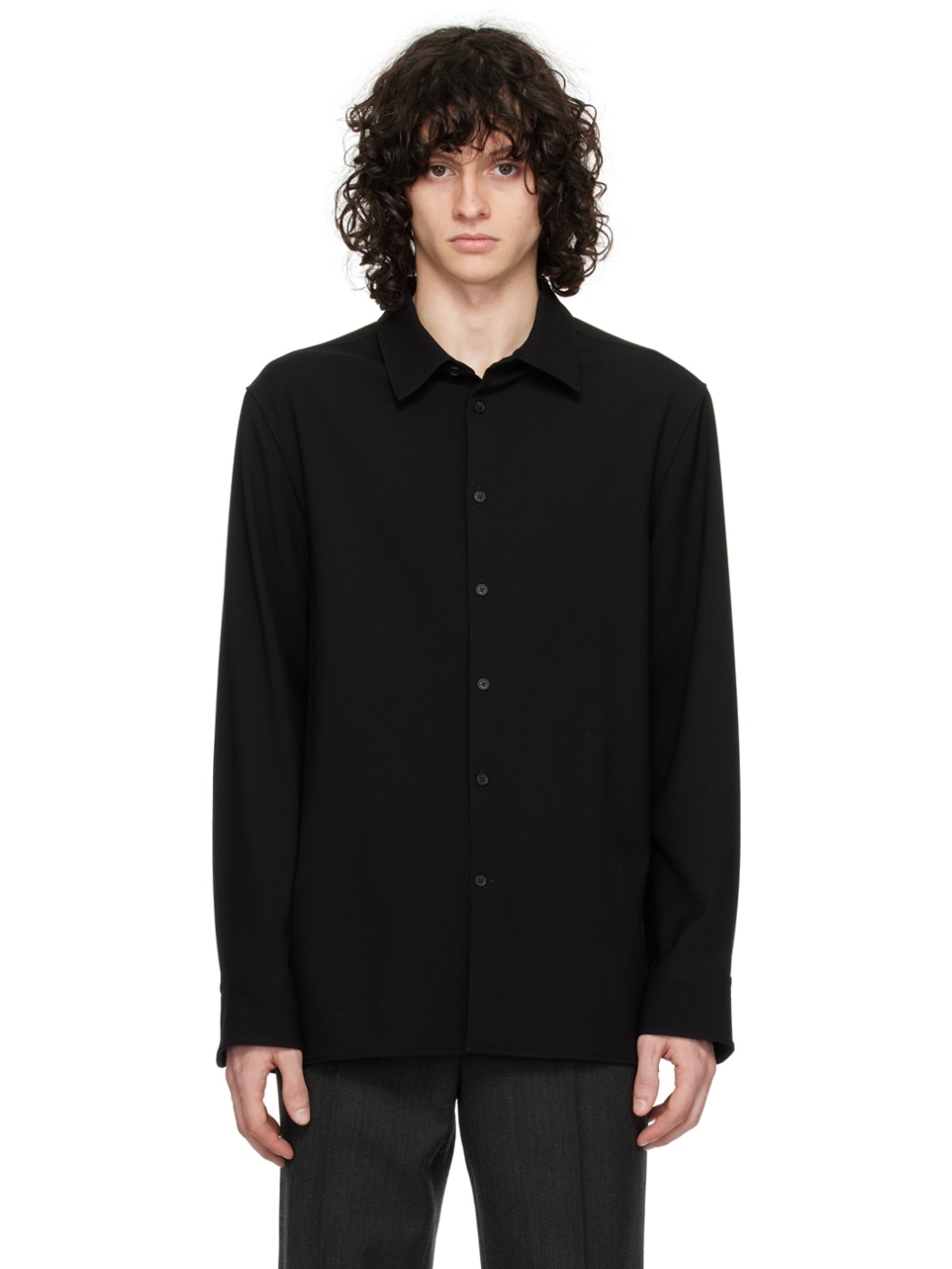 Wool gabardine shirt. · Spread collar · Button closure · Vented side seams · Dropped shoulders · Single-button barrel cuffs · Twin pleats at back yoke · Horn hardware Supplier color: Black 100% wool. Made in Italy 241359M192008