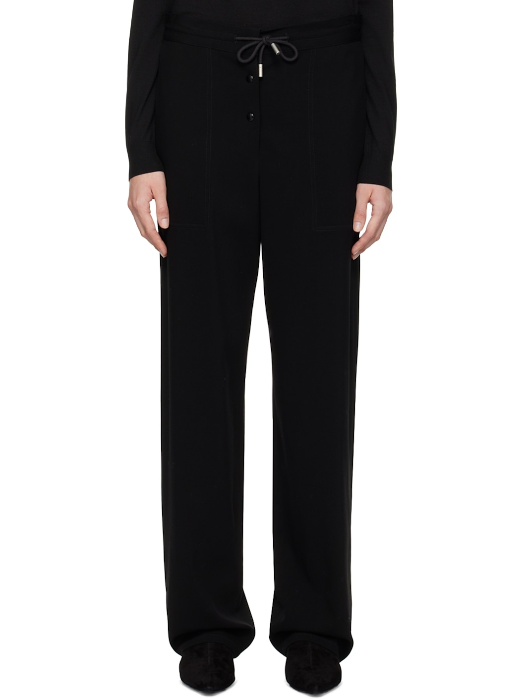 Relaxed-fit wool- and nylon-blend crepe trousers. · High-rise · Drawstring at waistband · Two-pocket styling · Exposed press-stud-fly Supplier color: Black 80% wool, 20% polyamide. Made in Italy 242359F086000