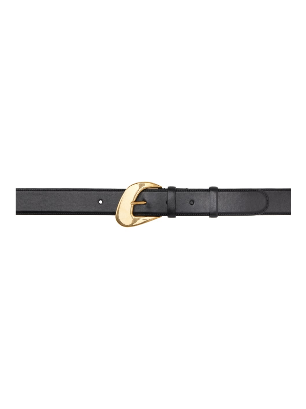 Buffed leather belt in black. Sculptural gold-tone hardware at pin-buckle fastening. Supplier color: Black Leather. Made in Italy 232359F001002
