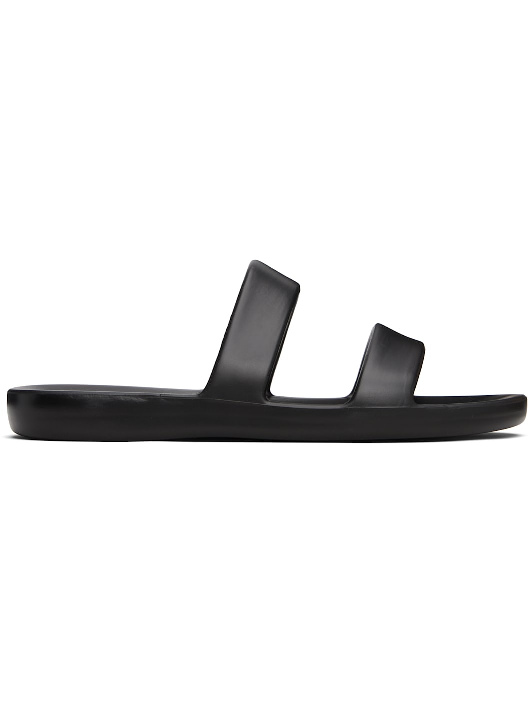 Lightweight foam rubber flat sandals in black. · Open toe · Logo embossed at molded footbed · Treaded foam rubber sole Supplier color: Black Rubber. Made in Italy 251359F124006