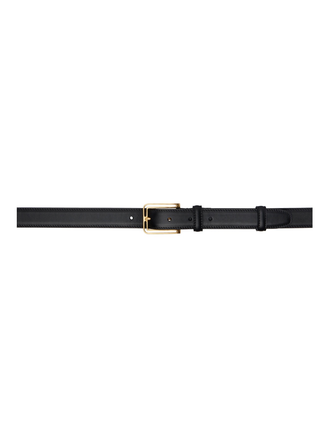 Buffed calfskin belt in black. · Pin-buckle fastening · Gold-tone hardware · W1.25" Supplier color: Black Calfskin. Made in Italy 242359F001020