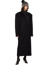 Double-faced recycled cashmere- and wool-blend melton coat. · Heavyweight · Peaked lapel · Double-breasted button closure · Seam pockets · Padded shoulders · Central vent at back hem · Welt pocket at interior · Full silk habotai lining · Horn hardware Supplier color: Black Body: 50% recycled cashmere, 45% cashmere, 5% wool. Lining: 100% silk. Made in Italy 251359F059008