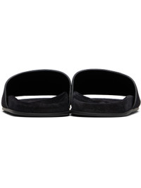 Calfskin suede slides. · Open toe · Logo stamp at molded footbed · Rubber sole Supplier color: Black Upper: calfskin. Sole: rubber. Made in Italy 252359F124007
