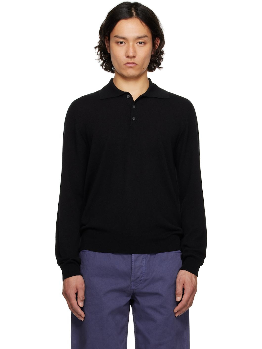 Knit cashmere polo. - Spread collar - Three-button placket - Rib-knit hem and cuffs - Horn hardware Supplier color: Black