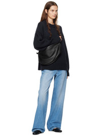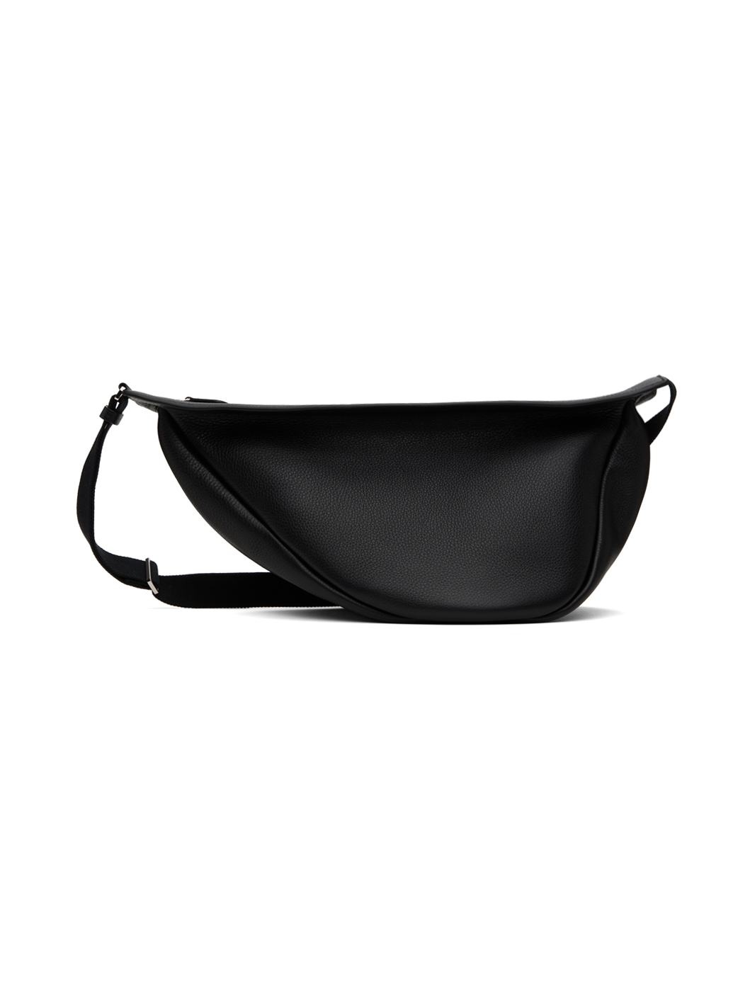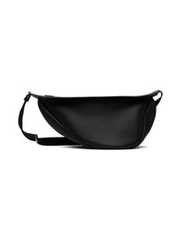 Pebble-grained calfskin shoulder bag in black. · Adjustable webbing crossbody strap · Zip closure · Suede lining · H8.75" x W16" x D6.5" Supplier color: Black Calfskin. Made in Italy 242359F048007