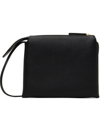 Grained calfskin shoulder bag in black. · Crossbody strap · Logo embossed at face · Zip closure · Two-compartment interior · Suede interior · H6.5" x W7" x D1.5" Supplier color: Black Calfskin. Made in Italy 251359F048018