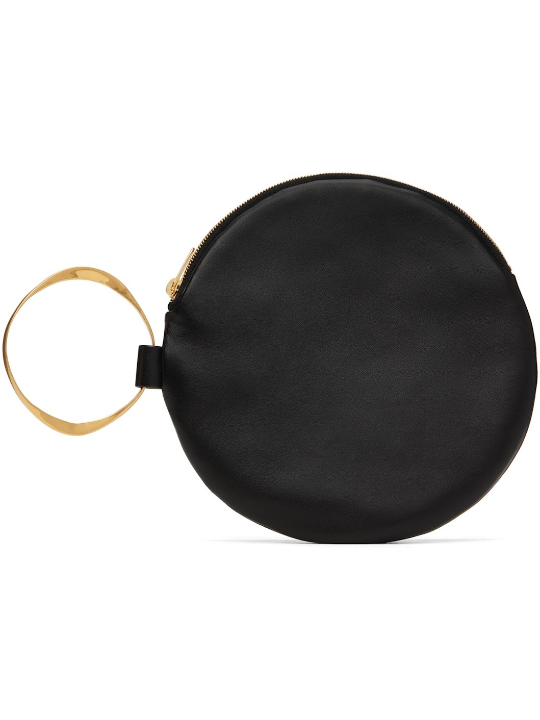 Buffed nappa lambskin clutch in black. · Metal O-ring carry handle · Logo embossed at back face · Zip closure · Patch pocket at interior · Satin lining · H7.5" x W7.5" Supplier color: Black Lambskin. Made in Italy 251359F044007
