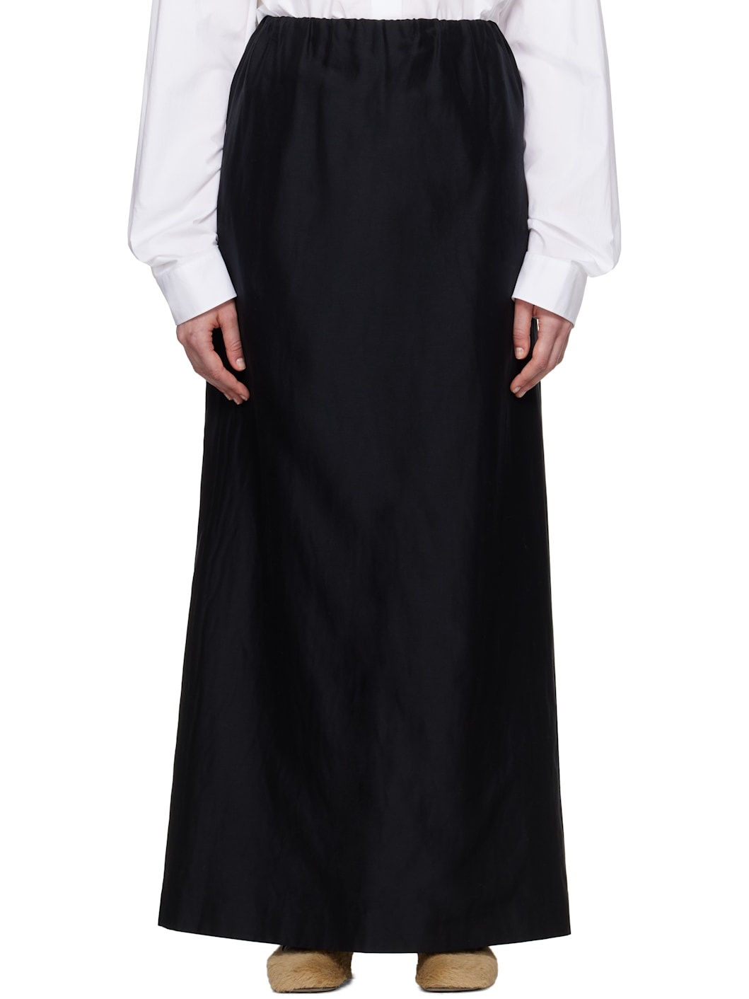 Double-faced cotton- and silk-blend voile maxi skirt. · Elasticized waistband · Seam pockets · Central vent at back hem Supplier color: Black 69% cotton, 31% silk. Made in Italy 252359F093001