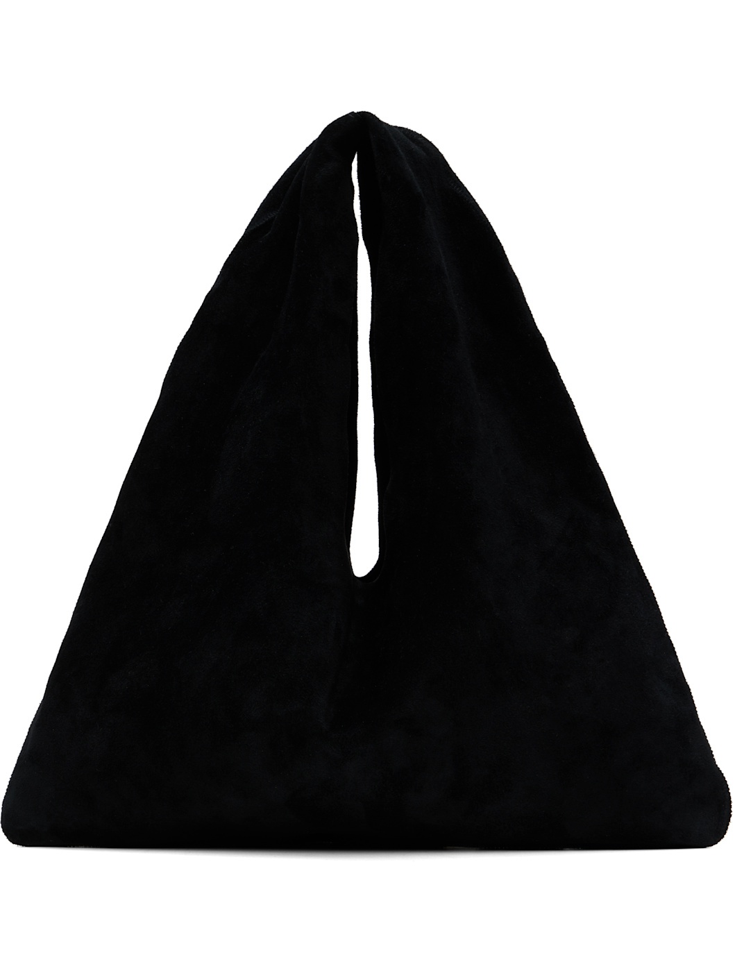 Calfskin suede tote in black. · Integrated carry handle · Logo embossed at face · Open throat · H7" x W12" · Total height: H12" Supplier color: Black Calfskin. Made in Italy 252359F049021