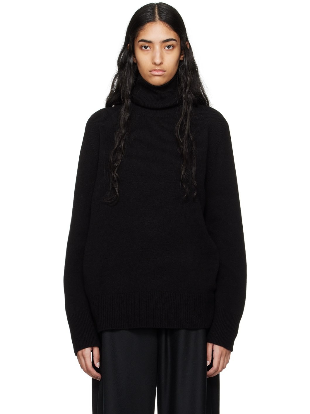 Knit wool- and cashmere-blend turtleneck. · Rib knit collar, hem, and cuffs · Dropped shoulders · Central garter stitch stripe at back Supplier color: Black 65% wool, 35% cashmere. Made in Italy 242359F099004