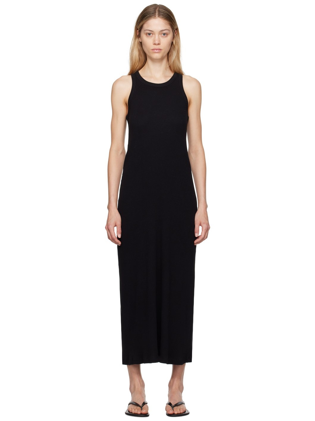 Straight-fit lightweight cotton ribbed jersey dress. Crewneck. Supplier color: Black