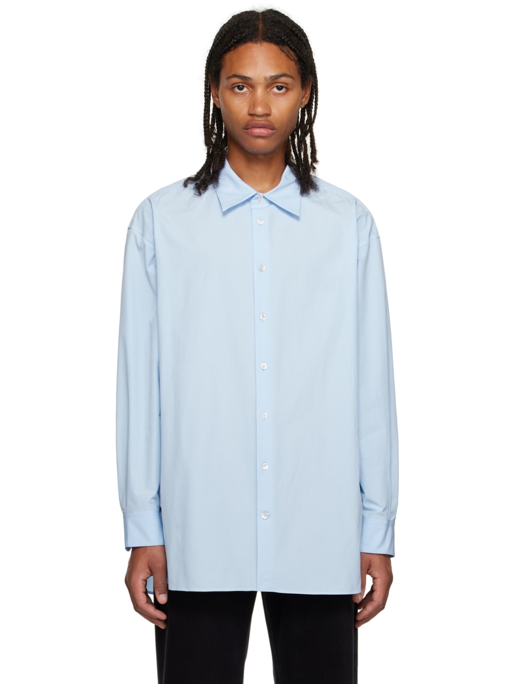 Cotton poplin shirt. · Spread collar · Button closure · Droptail hem · Single-button barrel cuffs · Shell hardware Supplier color: Powder blue 100% cotton. Made in Italy 232359M192010