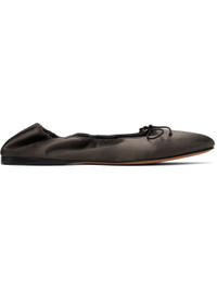 Viscose- and silk-blend satin ballerina flats in brown. · Grosgrain piping and drawstring at elasticized collar · Suede and lambskin lining · Leather sole with rubber injection Supplier color: Brown