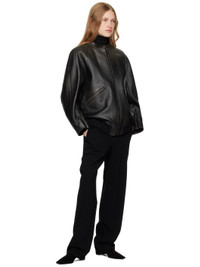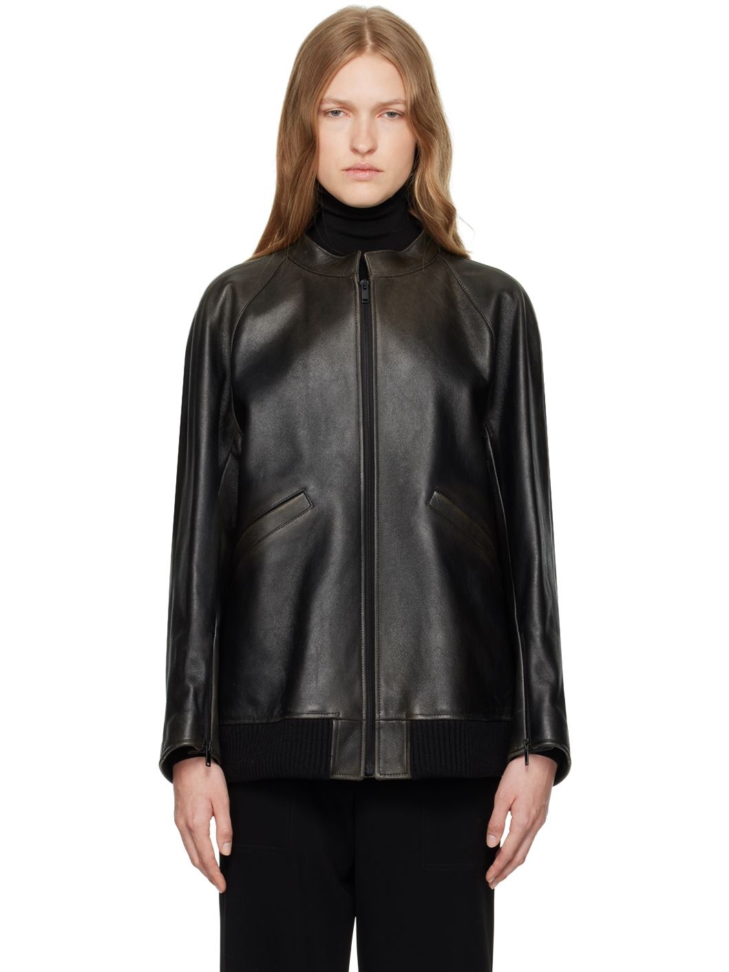 Oversized grained calfskin jacket. · Round neck · Zip closure · Welt pockets · Rib-knit hem · Raglan sleeves · Zip vent at cuffs · Welt pockets at interior · Full jersey lining Supplier color: Dark brown Body: 100% calfskin. Lining 1: 96% cotton, 4% cashmere. Lining 2: 100% silk. Made in Italy 242359F064001