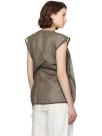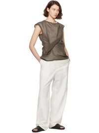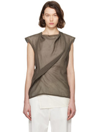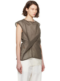 Cotton voile and sheer cotton organza top. Draping, gathering, and frayed edges throughout. · Layered construction · Cowl neck · Vented side seam at underlay · Concealed zip closure at underlay Supplier color: Brown 100% cotton. Made in Italy 252359F111001