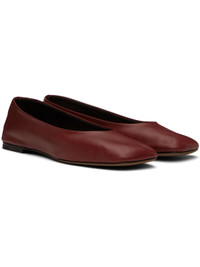 Lightweight buffed lambskin ballerina flats in burgundy. · Square toe · Suede lining · Stacked leather heel with rubber injection · Nubuck sole Supplier color: Rust Upper: lambskin. Sole: leather. Made in Italy 251359F118014