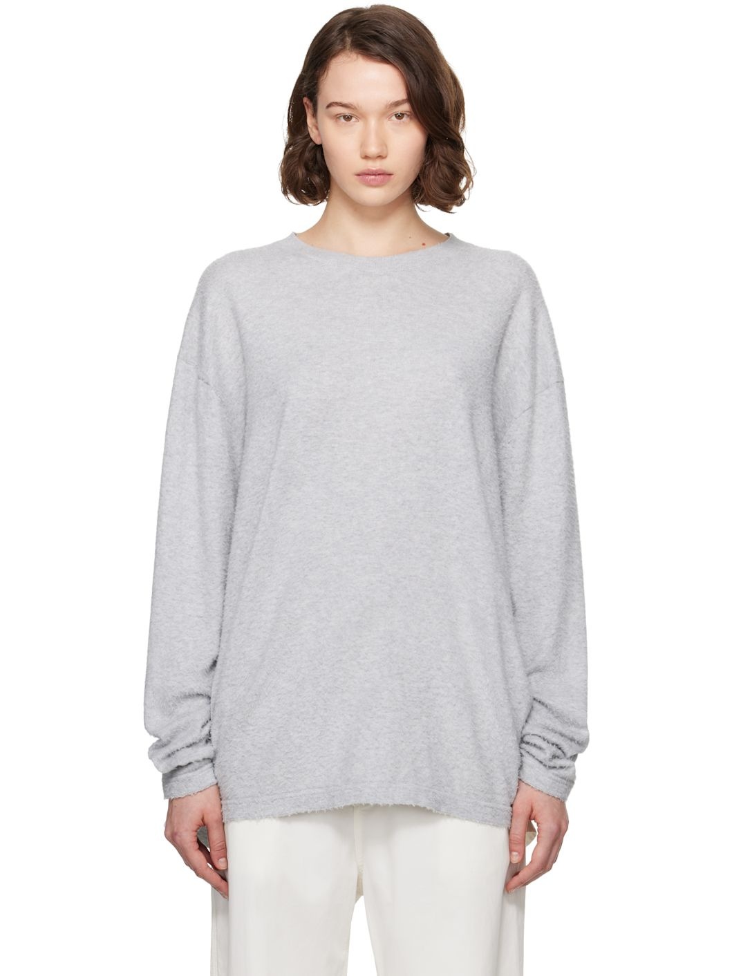 Brushed knit cotton top. Pilling throughout. · Rib-knit crewneck · Dropped shoulders Supplier color: Grey melange 100% cotton. Made in Italy 252359F110012