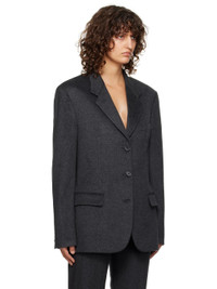 Brushed cashmere melton blazer. · Notched lapel · Button closure · Welt pocket at flap pockets · Padded shoulders · Four-button surgeon's cuffs · Welt pocket at interior · Full silk habotai lining · Horn hardware Supplier color: Charcoal melange Body: 100% cashmere. Lining: 100% silk. Made in Italy 251359F057004